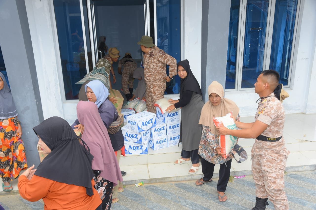 Total 307 karung beras, 33 dus minyak goreng, 54 dus susu bayi, serta makanan siap saji, air mineral, diapers, obat-obatan dan perlengkapan untuk dapur umum dibagikan di keempat kecamatan terdampak bencana tersebut.